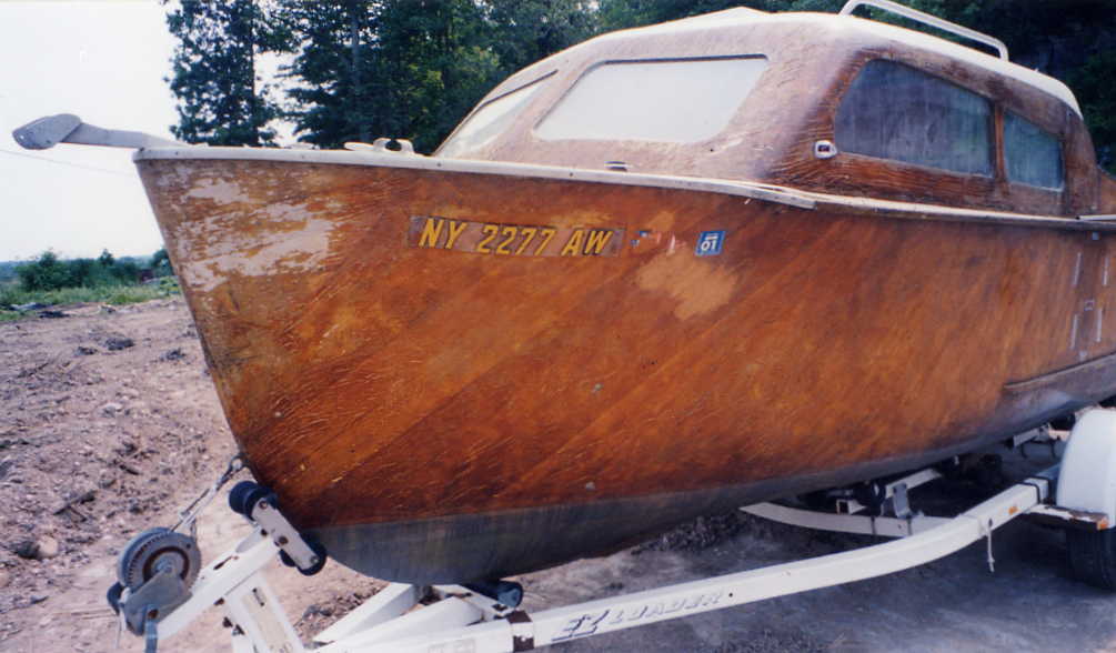 1953 molded plywood day cruiser built by US Molded Shapes. It is powered by a 1953 Chris Craft Model K 95 hp inboard engine. The boat has not been used since 2002 and is in need of a restoration.