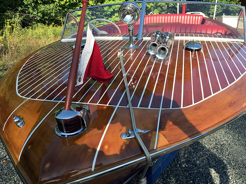 Discovered in Ossipee, NH ten years ago. Restored by antique boat restorer in Ossippee, NH. Has been used on Lake Sunapee for the past 5 years. New 5200 bottom. Converted to 12 volt. new blood red upholstery. custom cover. Engine thoroughly serviced and runs well. Exterior finish redone 2 years ago. One of only 101 hulls built and one of only 38 with MBL engine. Single axle trailer included.