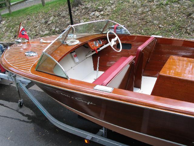 Boat was completely restored 15 years ago by the previous owner. Current owner has had the boat for 5 years, and it is used frequently. Has a new marine vinyl interior, the topsides were revarnished and reseamed spring 2006, new stainless prop shaft, starter and alternator rebuilt. This boat needs nothing, and it is in the water, ready to go.
