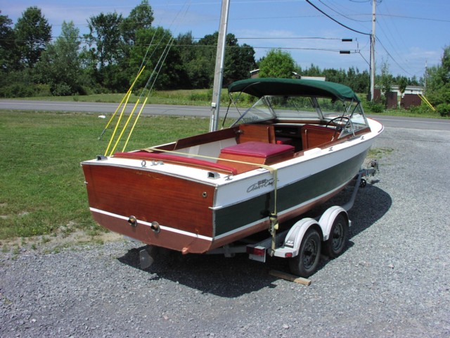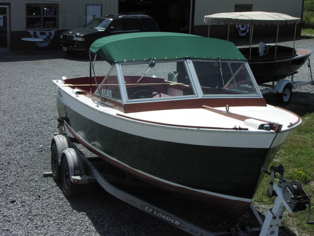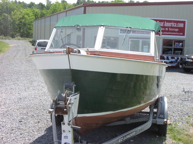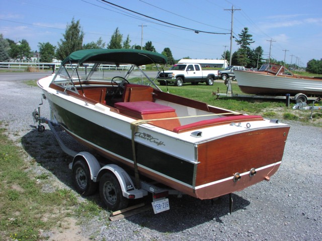 The boat is in good shape and runs well. Engine is from an Owens, but there is a Chris Craft 283 block available. Has a new dark green bimini and the cushions are in good shape. Paint and varnish in good condition and the vinyl decks are in excellent shape.