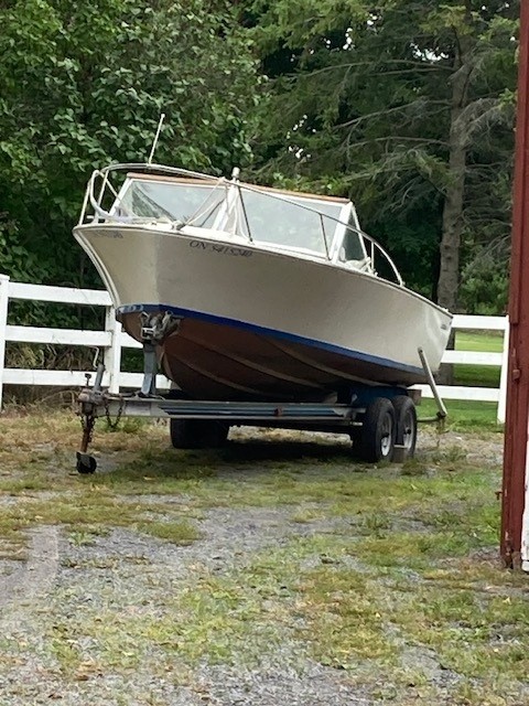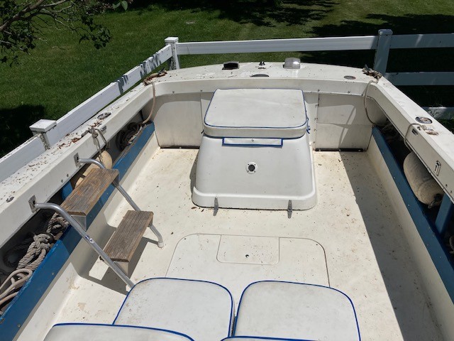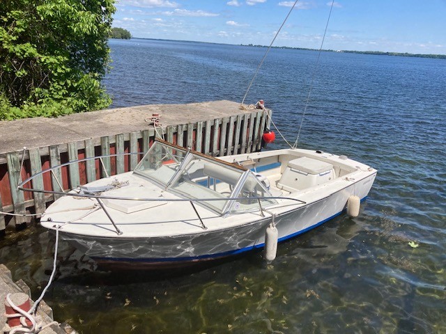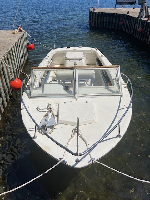 Classic Bertram Moppie. Original but totally functional. Purchased in 2016 in Cape Cod, MA. Extensive engine rebuild in 2020 (new camshaft, rebalanced crankshaft, new pistons, new intake/exhaust manifold, timing chain and gears, new out drive impeller). Complete survey in 2020. (A previous owner installed leaning post to replace front seats.)
