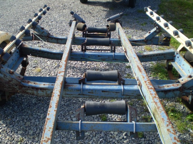 A roller trailer that is easily changed to bunks...This is an older model of Holesclaw trailer which has been always well maintained and been stored indoors. The trailer has small rollers and would be perfect for a 18 foot boat. The bearings are in good shape and it is in good solid shape. This will pull well and currently has a transferable current registration.