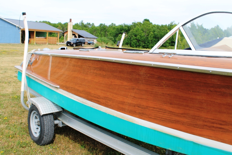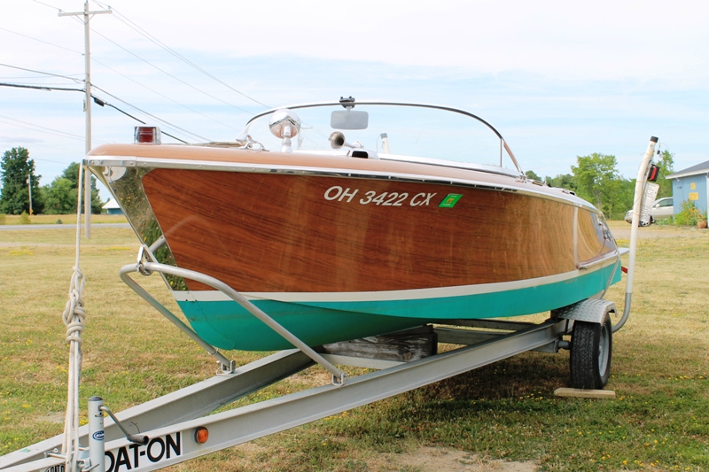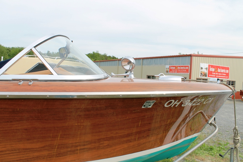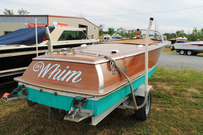 Fresh water and brought to Alexandria Bay from Cleveland Ohio, summer 2006. Engine had just been rebuilt with only 10 hours then. Upgraded with electric trim tabs. Has original Elite Craft AM/FM radio with casette, Stainless Spotlight and horns, dual batteries, seat cover, bimini and full storage cover, aluminum custom trailer, Great boat with the look of a 1947 wooden Chris Craft, but without the maintenance. Just wax and enjoy boating