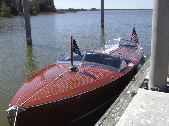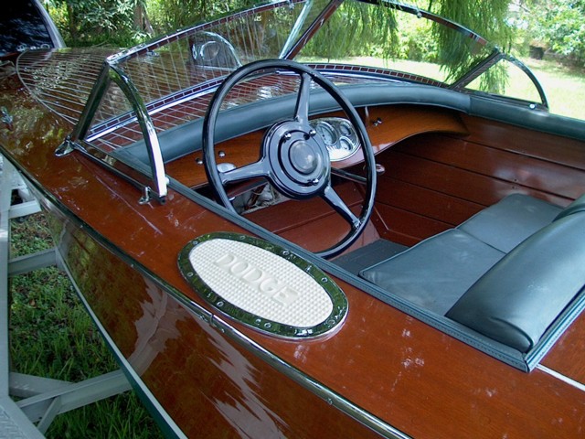This is the oldest exisiting 21.5 Dodge Runabout around today. Of the less than 160 boats that were made this is Hull #3 and very few are known to still reside. This is the prettiest 21.5 foot Dodge you will ever see and one of a very few available. The upholstery is a lovely color of blue. Everything about this boat is beautiful and this boat is now "Show Ready". The boat has been re-varnished with 2 fresh cost of varnish and new deck strips. The engine and bilge have also been repainted. Gauges and hardware, upholstery, bottom and engine are all in excellent shape and this boat is worthy of serious attention and consideration.Boat is presently getting a 5200 Bottom Feb 2010.