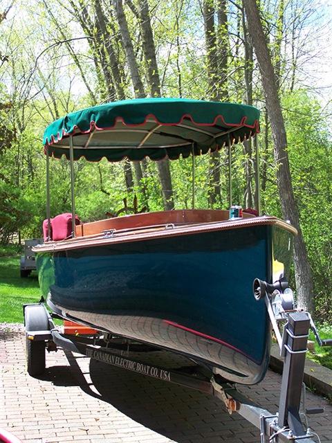 Classic Cocktail Cruiser in impeccable condition, garage kept, only fresh water use. Fiberglass Hull, teak and mahogany finish, custom upholstery, custom trailer. Ready to go will cruise 8 hours per charge. Excellent running condition, Full custom mooring and trailer cover. All bright-work,brass and stainless in perfect condition. For a Classic no gas quite dependable ride this is it and you wont find a better looking one with all the included extras.