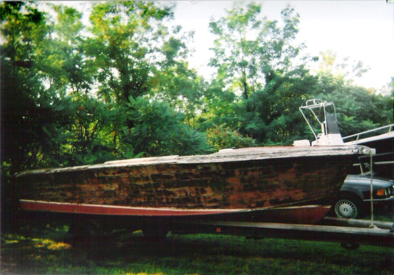 21' Century mahogany inboard. Has no engine, but prop shaft, exhaust, and rudder are intact. Requires a complete restoration. Comes with a heavy duty single axle trailer.