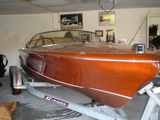 Current owner has had the boat for 6 years and it has been meticulously cared for and is in pristine condition. A multiple show winner with the previous owner this boat bears the Hull ID# 38. This boat also has the original Chrysler Hemi. The bottom has been redone and is strong and stucturally sound. Chrome is in great condition. Interior is correct gold and white and is flawless. The fin is original also excellent. Boat has a new mooring cover which goes to the waterline. Pics updated October '08.