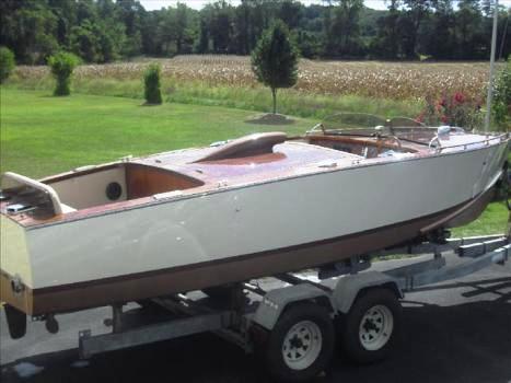A beautiful custom boat built on an original 1955 Chris Craft utility boat hull. All mahogany wood. Spotless 454 Mercruiser marine racing engine with polished chrome and thru-hull exhaust with less than 8 hours. New batteries and all lighting functional. Stainless steel gas tank. Comprehensive engine service and tune up completed July 2010. Accurate fairing, new multi-layer fiberglass hull with Alwgrip marine paint completed August 2010. Brand new sunbrella canvas cover completed August 2010. Heavy-duty dual axle galvanized trailer was Maryland inspected June 2010. Many additional features and custom extras. Garage kept year round.