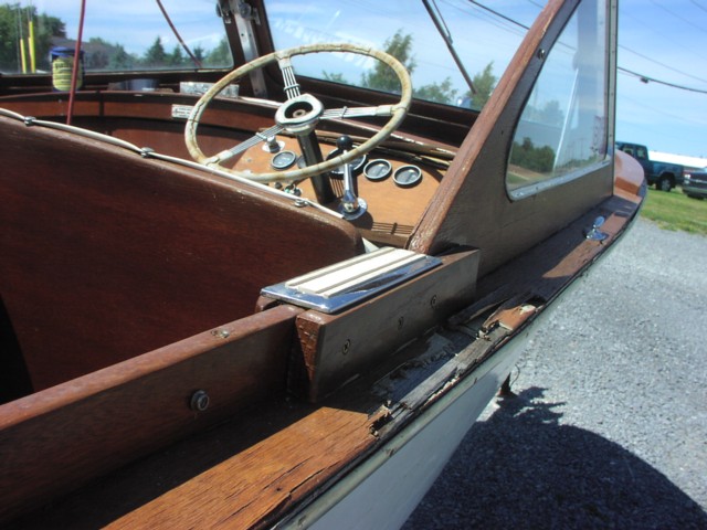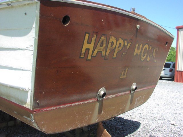 The engine has been recently overhauled and runs. The boat has been sitting on a roller trailer for too long and has a sway in the bottom. The decks will need to be replaced as well.