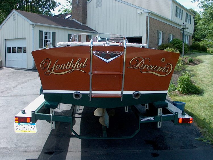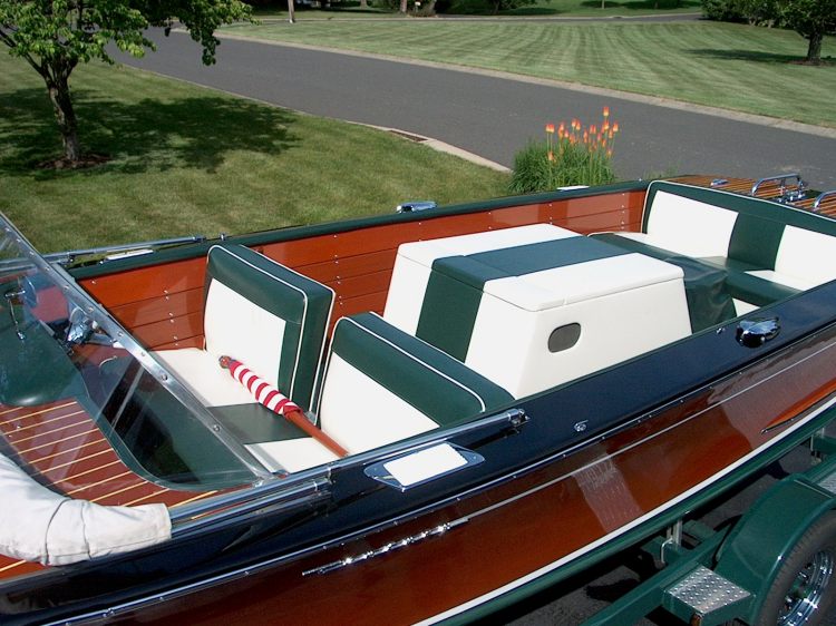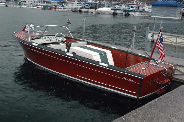This 1963 Century Resorter 21’ was specially designed to ride softly in the choppy waters of lakes and sounds. Open walk through cockpit allows for plenty of equipment storage. The vinyl fore and aft decks have been removed and replaced with mahogany planking. The inside vinyl panels were likewise planked at that time. The engine is a Chrysler Graymarine 327 cubic inch 238 HP V-8. The engine is the original, electronic ignition having been installed. The engine runs beautifully with plenty of power for skiing. In 2005, this boat had a new 5200 bottom installed with all defective wood replaced.(Photo history) The work was done by professional restorer By 2007, all mahogany had been refinished into a deep gloss. Boat has always been in fresh water. Only 110 of this Resorter model were manufactured which makes this boat rather rare. Convertible top included along with mooring cover. Since 2005 the boat has been sheltered and used no more than three times a year.