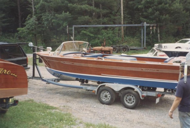 This Coronado was completely restored in 1994. Nearly all of the wood from the keel up has been replaced with the exception of 4 planks. The Chrysler 440 Engine was also overhauled in 1994. The chrome and interior were also entirely redone. The owners still have all of the restoration sheets which state everything that was done to the boat. This boat is only used two weeks out of the year either on the St Lawrence or on Lake George. The prop shaft was replaced in 2001 after the loss of the old one. Included is a boat cover and a 2000 EZ Loader tandem axle trailer.