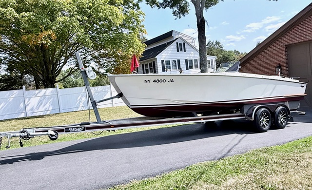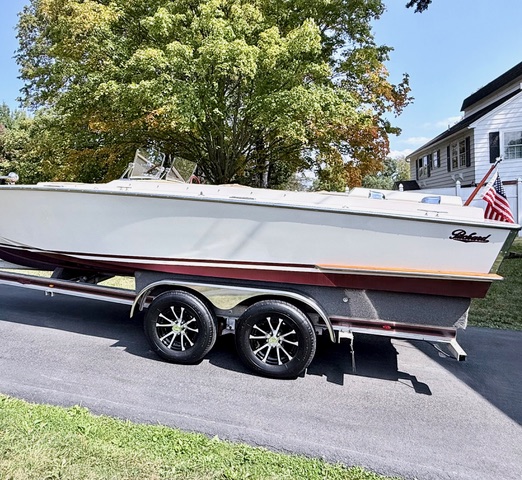 HERE IS A VERY RARE 1994 PACKARD 21' CLASSIC - INBOARD/V-DRIVE!!! ONLY 276 HOURS. POWERED BY A CRUSADER 5.7L (GM) 350 V8 AND HURTH MARINE GEAR TRANSMISSION. ELECTRONIC FUEL INJECTION, DUAL EXHAUST, STAINLESS STEEL DECK HARDWARE. THIS IS A TRULY BEAUTIFUL, WELL TAKEN CARE OF, ALL ORIGINAL EXAMPLE!! FINISHED IN AN OFF WHITE WITH TAN & RED VINYL INTERIOR. RED SNAP IN CARPETS. GRANT WOOD RIMMED STEERING WHEEL. VDO "ROYALE" GAUGES. 3 BLADE PROPELLER. HURTH HSW 630V1 V-DRIVE TRANSMISSION WITH 1.55:1 GEARING. WE JUST HAD THE IMPELLER AND GASKET CHANGED, INSTALLED 2 NEW BATTERIES, INSTALLED NEW PERKO LED LIGHTING IN COCKPIT AND ENGINE COMPARTMENT. DUAL BATTERY SHUT OFF. DUAL FRONT GLASS BEVELED WITH POLISHED STAINLESS STEEL HARDWARE WINDSHIELDS. FRONT STERN AND BOW HAS FINISHED MAHOGANY WODD ACCENTS. COMES WITH BURGUNDY COCKPIT COVERS AND POLES, TAN COLORED BIMINI TOP, RED DOCK LINES, LIFE JACKETS AND 2 RED BUMPERS. THE CONDITION OF THIS BOAT IS LIKE "SHOWROOM NEW"!! IT WAS ALWAYS ON THE LIFT UNDER A CANOPY AND STORED IN A HEATED/AIR CONDITIONED GARAGE IN THE OFF SEASON!! THE POLISHED RUB RAILS HAVE ALMOST ZERO MARKS!! THE INTERIOR HAS NO RIPS, NO TEARS AND STILL HAS A SOFT FEEL!!! YOU WILL NOT FIND A NICER EXAMPLE OUT THERE IN THE WORLD!! DO NOT MISS THIS OPPORTUNITY!! ALSO INCLUDED IN THE SALE IS THE ORIGINAL TRAILER, MADE BY "FAST LOAD CUSTOM BUILT TRAILERS". TANDEM AXLE. IT IS ALL ALUMINUM, WE JUST INSTALLED NEW POLISHED FENDERS, ALL NEW LED LIGHTING AND WIRING INTO A CONTROL BOX AND A 7 PIN CONNECTOR, NEW 2" BALL COUPLER, NEW WINCH W/ FOWARD/REVERSE/NEUTRAL SETTINGS, 4 NEW 14" WHEELS AND TIRES, NEW MATCHING BURGUNDY & BLACK DECAL DOWN THE SIDES WITH PACKARD DECALS. ALSO COMES WITH CUSTOM FRONT STERN 18" MAHOGANY FLAG POLE WITH A RED "PACKARD" FLAG. REAR MAHOGANY STERN LIGHT POLE WITH GLASS GLOBE & AMERICAN FLAG. THIS BOAT IS 100% READY FOR THE WATER OR TO BE DISPLAYED IN YOUR COLLECTION!! PLEASE IF YOU HAVE ANY QUESTIONS AT ALL DO NOT HESITATE TO REACH OUT TO ME VIA TEXT, EMAIL OR PHONE.