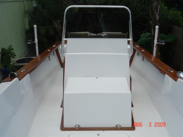 Vessel has had complete restoration performed by custom boat builder in Florida in 2007/08. Hull has been completely stripped, refaired, and painted with AwlCraft 2000. New 2007 Crusader 5.7L 330 hp Captains Choice engine package. All components in vessel are NEW including drivetrain components, electrical, fuel, steering systems, navigation systems, deck hardware, bilge pumps, trim tabs, custom mahogany covering boards, and raised panel doors. New custom trailer fit to hull. Vessel is a true classic in near perfect condition. Always immaculately cared for and covered. New price May 2011!