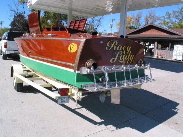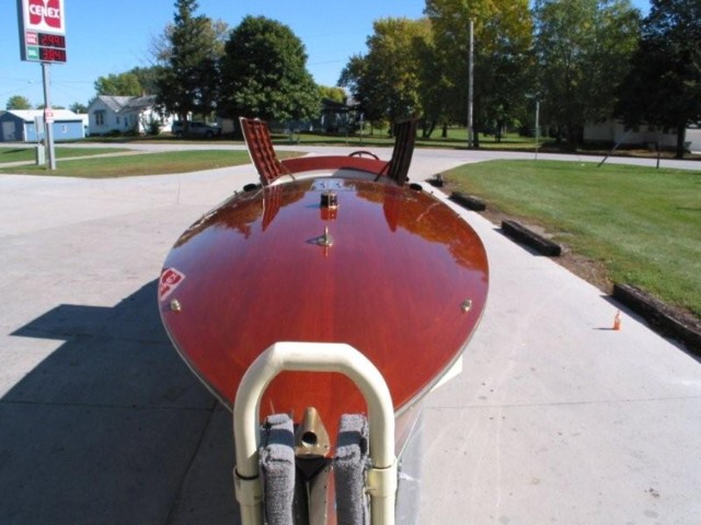 This is a 22 Foot Chris Craft Cadet which has been modified to be a rear seat Gentleman's racer. The boat has 90 % new wood which is all book matched. The boat is in turn key condition but will be at it's best when it is seen underway as the owner guarentees that the boat will do upwards of 75MPH. The interior, hardware and motor are all in very good conditiona nd the engien has less than 30 hours on it since a fresh rebuild in 2004. This boat comes with a custom fitted trailer which will fit the boat perfectly. This boat handles rough water beautifully and will turn heads wherever it goes.