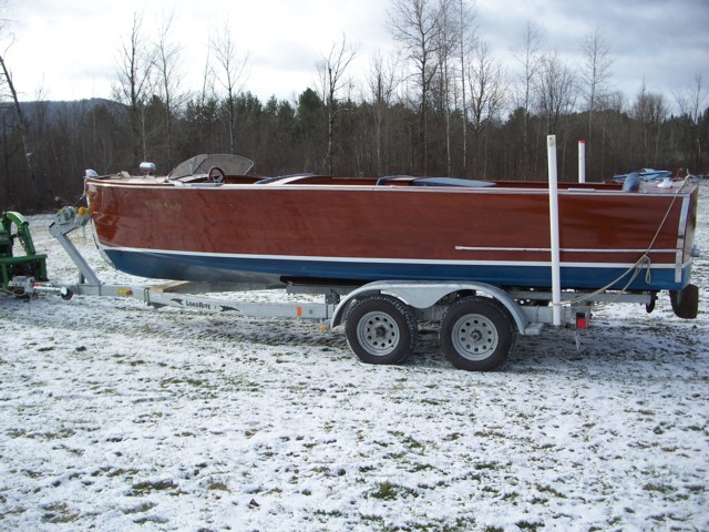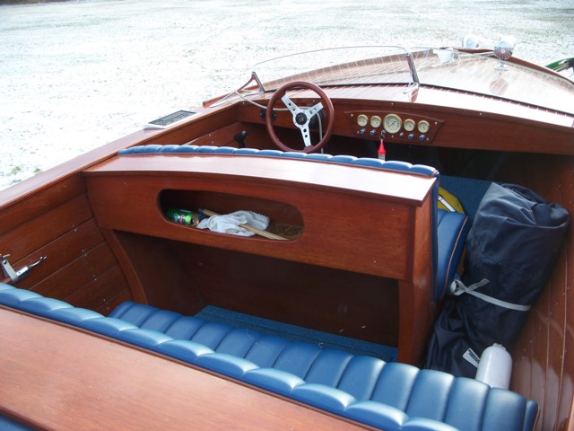 This is one of the first true "U-22's" produced by Chris Craft. Beautiful full restoration has put this one back on the "showboat circut". Repowered with a reliable modern V8 to give convenient starting and optimum power. A wonderful entertainment boat with the addition of the third 3/4 seat behind the helm. Fresh blue upholstery, a new wiring system and new chrome were all part of the restoration. A great roadworthy trailer makes this a portable boat ready to follow your family where ever you want to do your boating. A real classic Chris Craft.