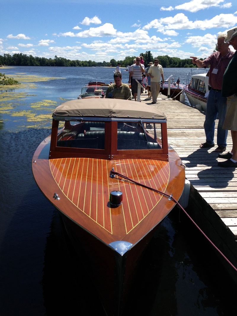 This striking Jeffreys Sedan was built by Myles Jeffrey of Athens, Ontario in 1943. The Jeffreys shop was known for its craftsmanship, beautiful designs, and use of local woods. This example was wonderfully restored in 2004 and repowered with a 165hp Mercruiser inline 6 cylinder engine, similar in size, but lighter than its original power. Only 2 of these 22 footers are known to exist today, and the other example has been converted into a triple cockpit. Professional maintained, well kept, and needing nothing but a new captain!