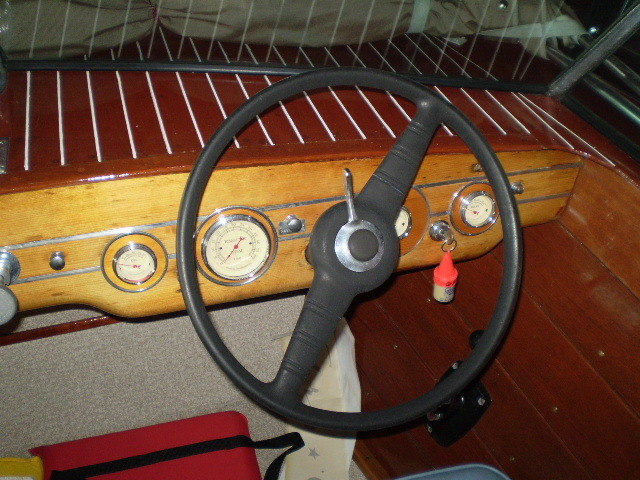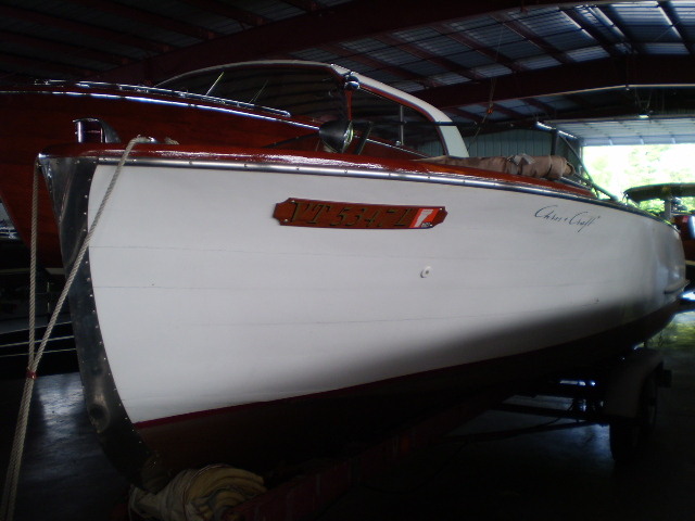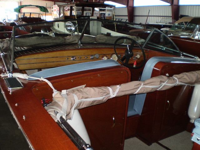 This boat has always been used in fresh water and properly stored under cover. This second owner boat has had the boat completely refinished with new gauges, new wiring, new cushions, new 2 part bimini top, new cupboards behind the seat. New paint on cedar sides, 3 planks replaced on the bottom. New upholstery, new battery as well. This boat needs some work to correct some bad wood and blemishes. All hardware and fixtures are original and are in very good condition. Spotlight on deck is original. Hull U-22-1110 These boats are highly regarded as being a dry, roomy practical boat that is ideal for it's entertaining value.
