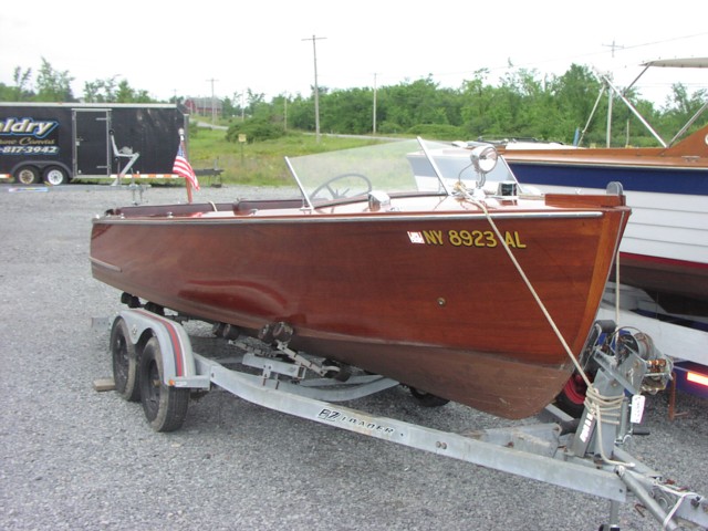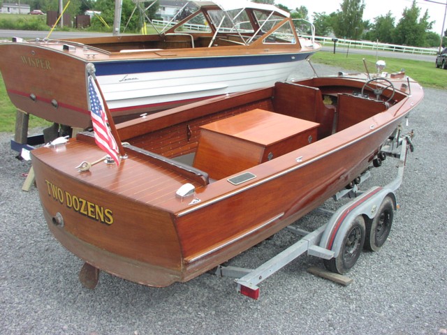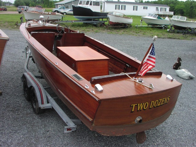 Boat was redone in 1982. Winning trophy for best in the show in 1982. All original wood and upholstery, engine was new in 1982. Very low hours on it since and boat not in water for 3 or 4 years now. Has been in the 1000 Islands area all its life (fresh water only), and in same family. Hardware is very good and complete, interior is excellent, finish is good and the bottom is sound and solid.