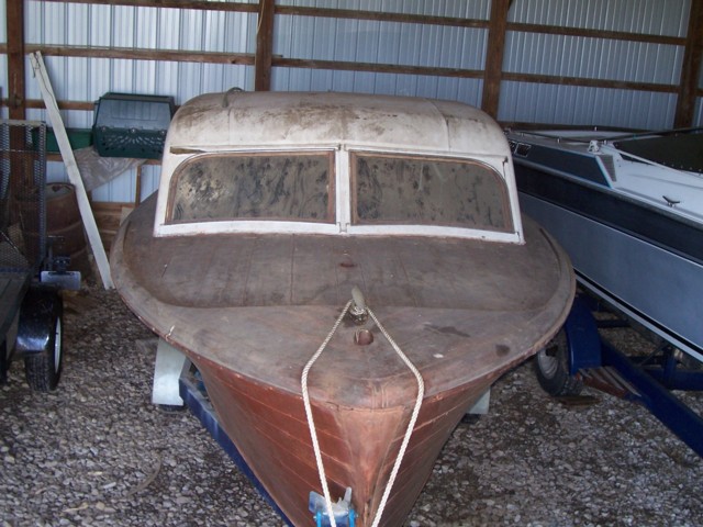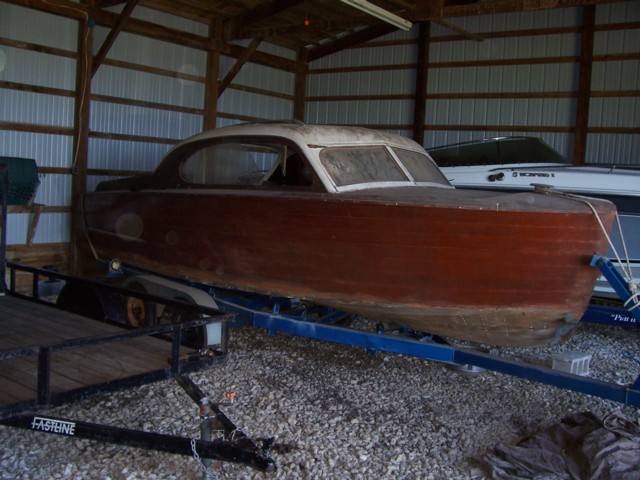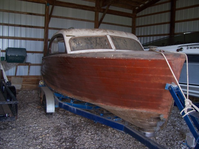 This is a rare 1949 Chris Craft Sedan with a varnished hull. It has been stored inside for at least 30 years and needs a complete restoration. The sides look good, but the bottom needs to be redone.