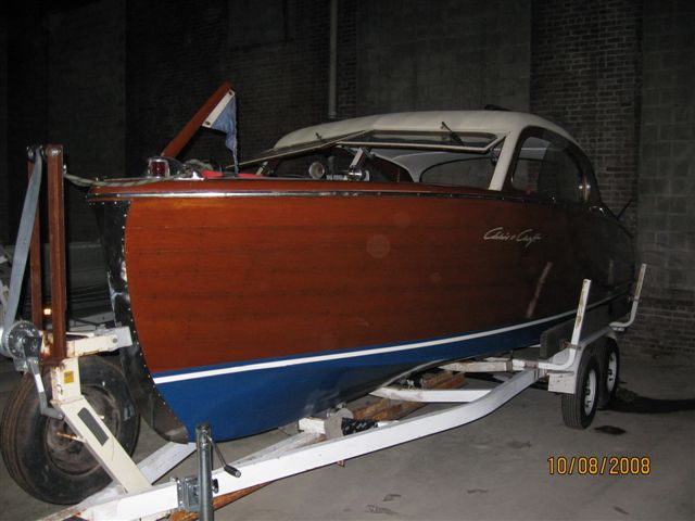 A very nice Chris Craft sportsman Sedan made in 1950. Chris Craft made only 464 between 1948-1954 and this units bears the Hull ID# of 259. New bottom 2004 complete. keel,frames chines,transom frames and transom, brand new from waterline to waterline. Dan Sutherland did the work to the tune of 15 grand. New headliner and newer upholstery. Motor overhaul with 450 hrs since. Runs like a watch. Could use some fresh varnish and a new canvass top for show. Otherwise turn key and go. Tandem trailer with elecric brakes.