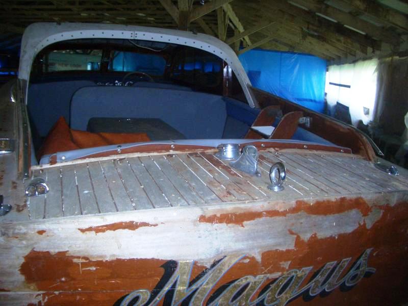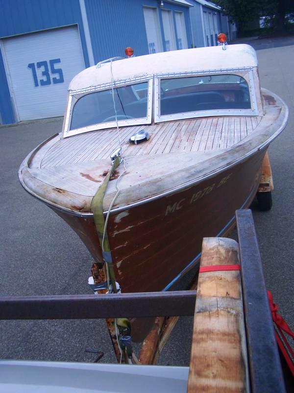 This boat is very original. The bottom is tight, engine runs well. Boat needs refinishing and new canvas top, very easy restoration. Boat come on a good trailer. Interior is in very good condition.