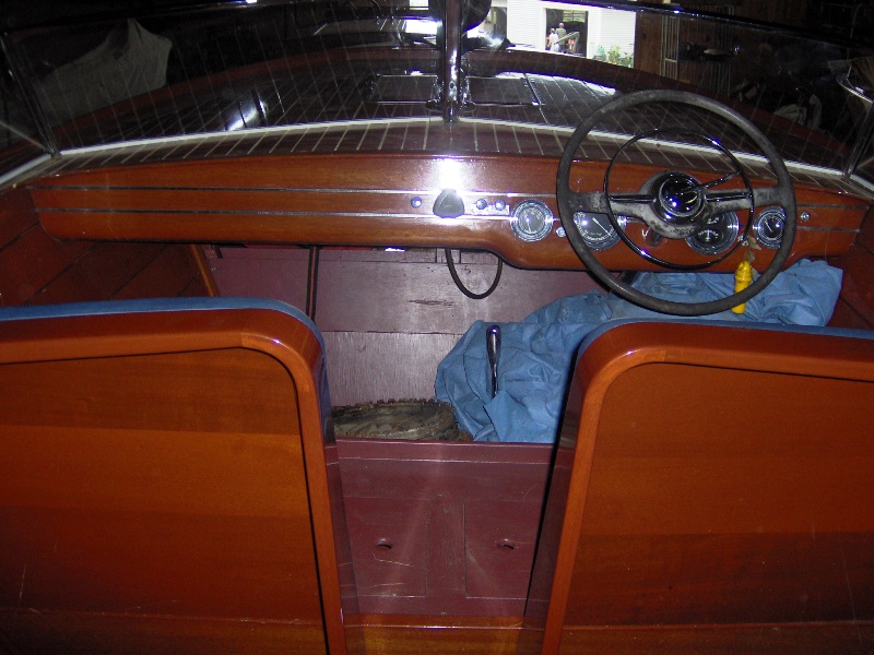 This Sportsman is priced for a quick sale! Chrome, upholstery, and varnish have been redone. She has been converted to a 12V system and the Chris Craft model M engine has been rebuilt. Fuel tank was cleaned and the boat should be a good runner. Some of the upholstery has a bit of mouse damage. Equipped with an Iva Lite. Stain is even, varnish work is good, and the boat is very presentable overall!
