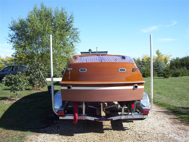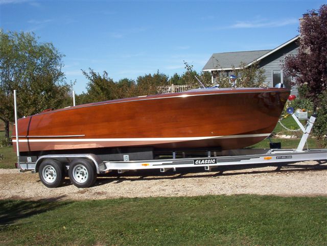 This 1956 22’Shepherd Runabout stands apart from the rest not only because she is a big girl, but because she has the power to back it up. HEMI Engine cylinder compression is 145 psi on all 8 cylinders. Engine had complete service fall of 05. The ignition is still 6 volts and well be changed to 12 volts. Same owner last 25 years and maintenanced by a gentlemen that built Gage–Hacker boats in his younger years. Stored and used on Lake Geneva, WI, last used ten years ago and has been started every spring and serviced. Boat was refinished ten years ago and looks like it was done last year, woodwork is very flat and smooth. Upholstery is ok and useable but not mint. Gas tank is stainless steel. Currently working on replacing windshield glass and will deduct $ from selling price if sold before completed. This boat is a rare find, with two coats of fresh varnish and new upholstery will easily be a ten. This is a must see boat all inspections welcomed. I CAN DELIVER. partial trade?