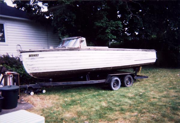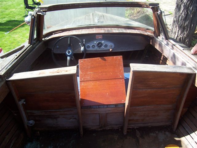 A project boat. Not sure of year....late 50's or early 60's? Lapstrake hull. Needs new mahogany deck among other things. We have all the chromed brass fittings which were removed in anticipation of restoring the boat. Also 40 lb. anchor, 2 spare brass props 7" radius, boat hook, bumpers. On trailer for the last several years. New mahogany "skeleton" for canopy. Inboard engine. Nice,large deck space between rear seat and cockpit. Needs new owner with lots of love and TLC to be restored to its former glory.