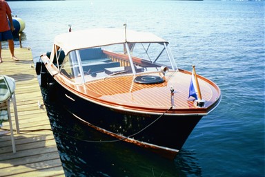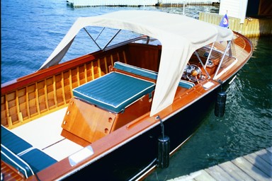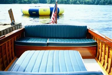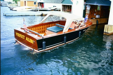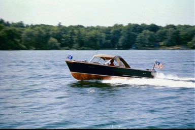 This Century was purchased on April 17, 1961 and has remained docked inside the same boathouse on Wellesley Island for 44 years. The boat comes with original owner’s manuals and “yacht log.” It underwent a complete restoration in 1995-1996. The restoration involved a new transom and bow stem, existing hardware was replated, new upholstery, a soft canvas top and trim tabs were added. The boat took first place in Century Division of the Alexandria Bay 2001 Boat Show and has been used continuously on the St. Lawrence River since new.
