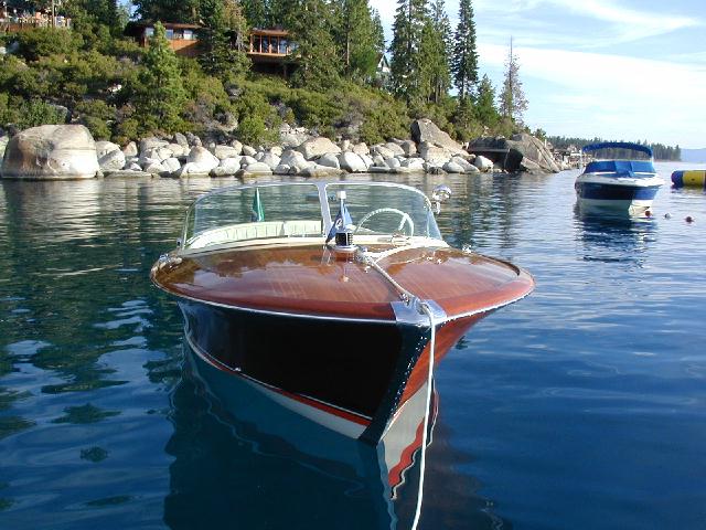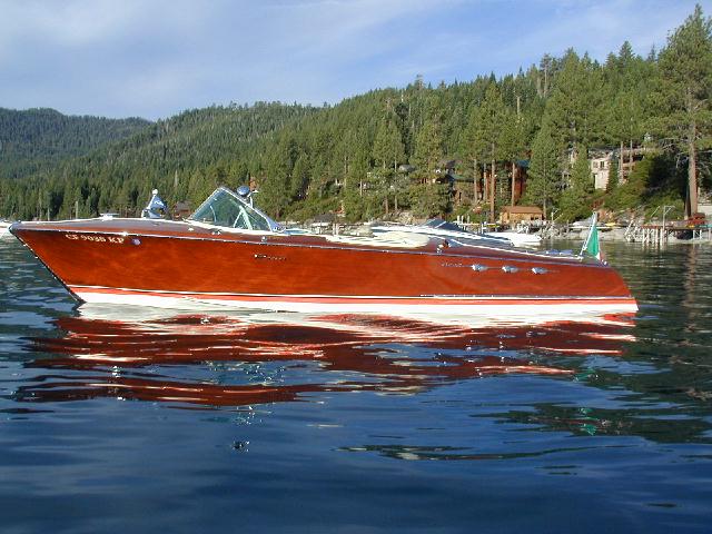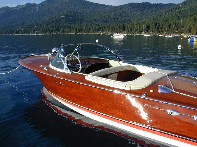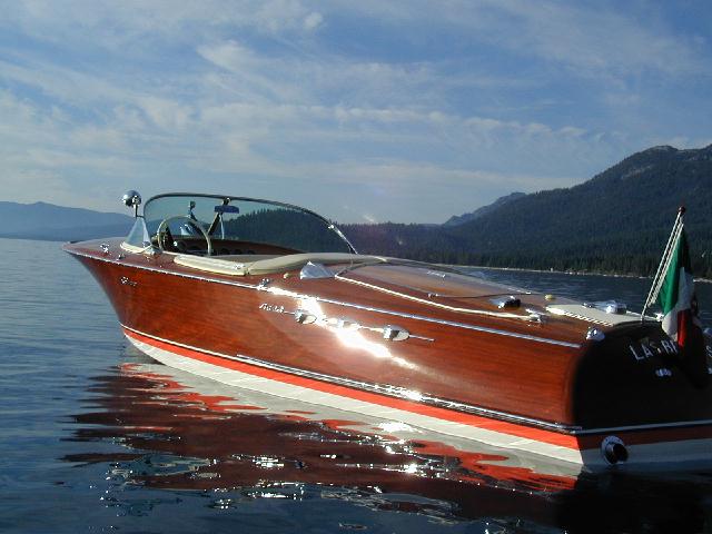 Hull # 916 was brought from from Holland in 2003 and thouroughly restored. Upon completion this boat has won First Place at the prestigous Lake Tahoe Concours boat show. All white upholstery makes this 1970 Riva very special looking boat. The boats restoration included a complete stripping of the boat to it's bare hull, refasteneing and resealing the entire bottom with new stainless steels screws and 3M 5200 caulking. All hardware cleaned, serviced and resealed. The African Mahogany hull and eckwere stripped to bare wood, refastened as needed and refinished with 18 coats of Epiphanes varnish. The windshield frame, rub rails and all deck hardware was re-chromed as new. Thw hite vinyl interior and flooring were rebuilt by a custom upholstery shop. Original 220 HP Crusader 327 Chevy engine and velvet drive transmission have been carefully rebuilt.