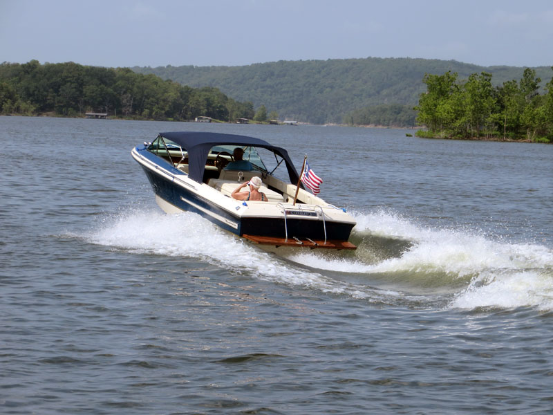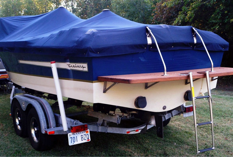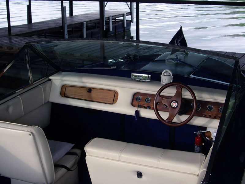 Meets all Coast Guard Regulations, ropes, fender bumpers, & 2 new life jackets. 3-step ladder on teak platform, water cooled shaft seal, engine flushing valve, tilt steering, depth sounder, compass, dual batteries with switch.