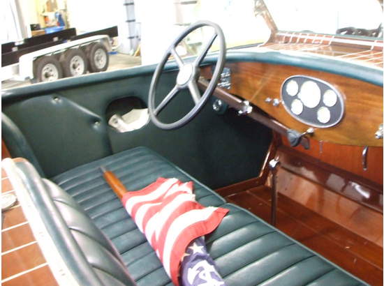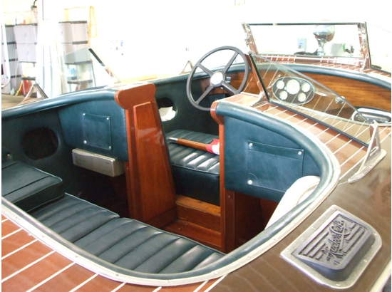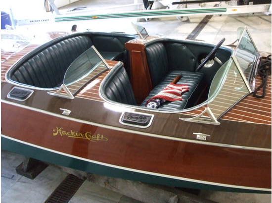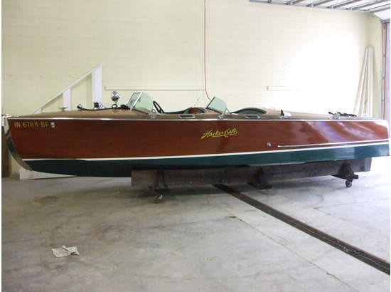 This is a very clean 22 foot Hacker Craft Triple Cockpit Runabout. It is very clean and lightly used with ONLY 83 hours on the engine. It has always been kept on an a boat lift in the summer and inside storage off season. It is powered by a 5.7 Litre Crusader engine which will run very strong. It is a double cockpit design with a walk through. The interior is green and in perfect condition and the chrome is also in perfect condition.