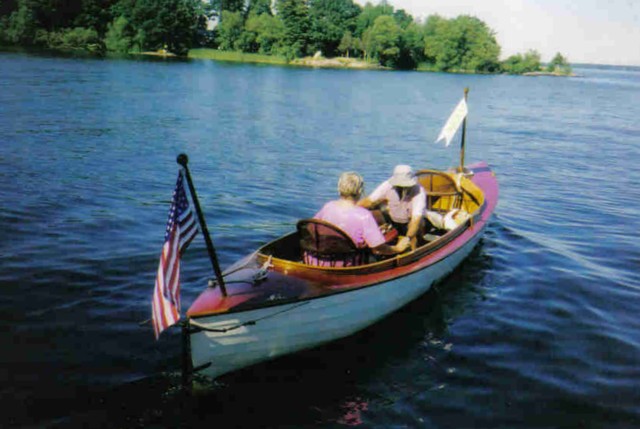 Here is one beautiful launch! This boat will definitely turn heads everywhere it goes. The Sterling engine is a piece of art and is very functional. The boat was acquired in July of 1987 from under Oak Tree at the Thousand Island Rift and restored in the late 80's with new keel, bottom planks and ribs. Blair and Tish Cook then completed the restoration including deck, interior and engine, the propshaft is the original. She now has a 12 volt tractor battery mounted forward for the automatic bilge pump and bow light.