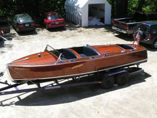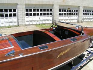 A classic lined original Hacker Triple Cockpit. With a blue interior and original dash this boat looks very smart and runs great with a modern powered 318 engine. A full waterline down restoration wad done in 2004 including a new keel, ribs, chine and a 5200 bottom. these boats are known for their great look and smooth ride and this boat beras the Hull # 147. easy to trailer and puls nicely. Also offered with a very good cover.