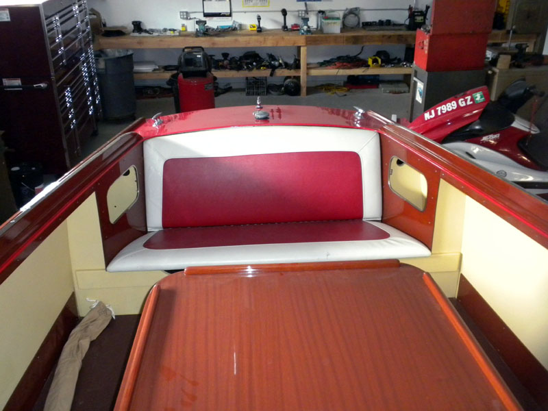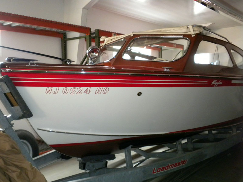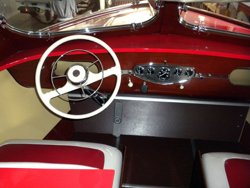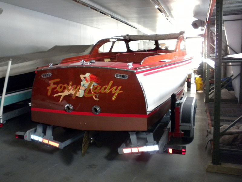 ACBS National Show winner. Foxy Lady won the ACBS Best Preserved at the Table Rock National show in September 2012 in addition to the Hagerty Youth Judging award. Foxy Lady is a 23' 1955 Higgins Sport Speedster. She is a very original boat and 1 of only 4 known to exist today. Delivered to the Miami Boat Show in 1955, the boat sports a cool sliding hard top and oodles of power! The original motor remains in the boat today; a Chrysler M45S V8 cranking out 200hp. The initial preserved restoration was completed in 2008 and she has been kept in Concours condition since.