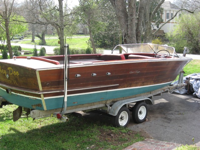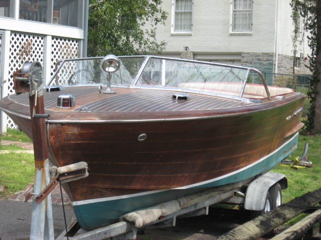 Here's your chance to own an all-original Chris Craft at a very reasonable price. This will be a beautiful, roomy, comfortably riding boat worth much more when restored! Original bottom needs to be replaced with new no-soak bottom. Some cosmetic wood work needed topside with covering boards and bullnose. Boat is complete with all original hardware, and gauges... windshield alone is worth almost 8K from California Classics. Upholstery is serviceable but should be redone back to original. Engine turns over and is the original MBL 158 hp. Comes complete with trailer.