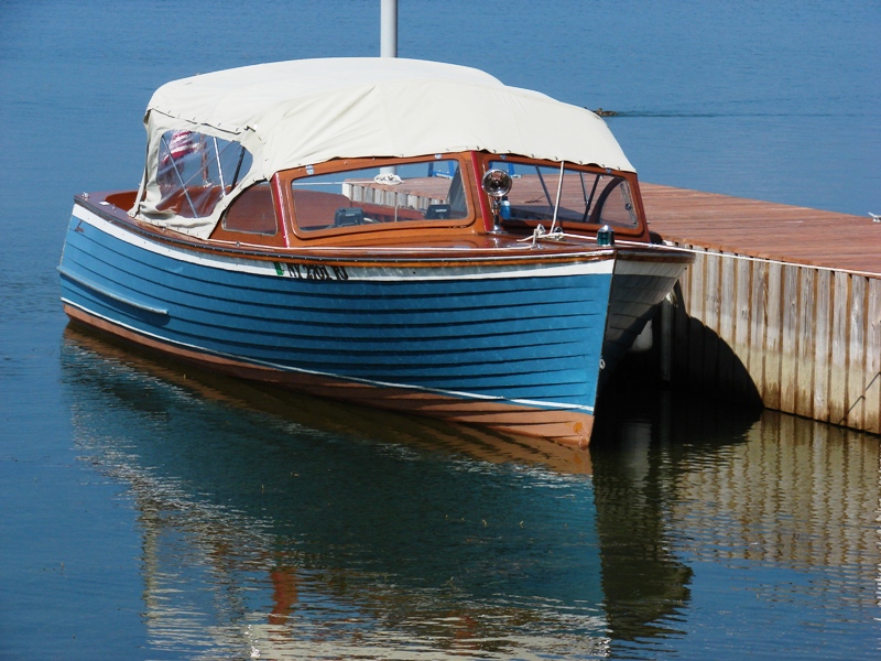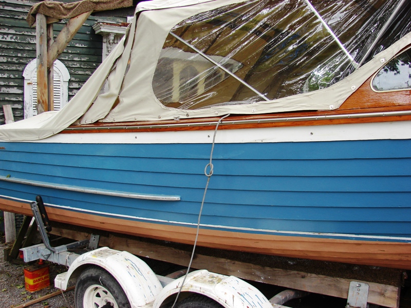 New steam bent/laminated stem perfect rabbet cut, new solid Honduras mahogany 5/4" transom. Much new Douglas fir plywood planking, some frames of steambent white oak. All bilge wood marinated with gallons of copper-naphthenate wood preservative. One 2007 coat of Sand Tan factory bilge paint for better appearance in bilge. All underwater laps pried slightly apart and laid in bead of 3M caulking. Several thousand silicon-bronze screws replaced and laps reclenched. Because plywood plies are swollen up with wood preservative, they do not require "soaking up". All new mahogany plywood decks and windshield.New Nautolex sole. Solid Structural 2006 NAMS survey available. New stem-to-stern oak gunwale. New ignition parts. Instant start, idles well at 500rpm. Gas tankk and carbs need cleaned, engine may need a new piston ring.Biggest classic sleek Lyman lapstrake with great tumblehome transom. Only selling because of cost of daughter's college expenses. Motivated Seller.