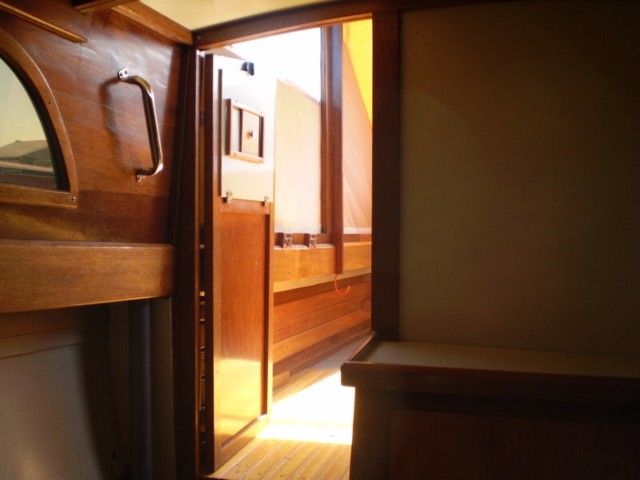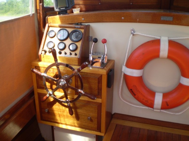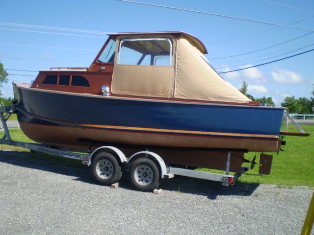 Lobster boat style wooden boat. Completely refurbushed. All new hardware and motor. Featured in Wooden Boat Magazine's "Relaunchings" section.