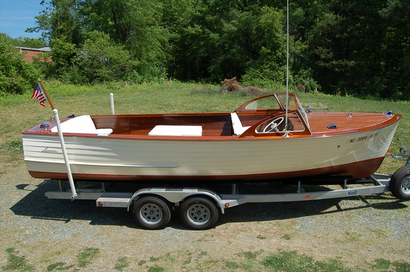 Classic Lyman in excellent condition! Fireball V8 engine w/electronic ignition, dual temp. gauges, dual batteries, dual bilge pumps, elect. horn. Recent topsides paint and revarnished in 2010 (professionally done). White interior, concealed porta-potty, VHF, depth-finder, anchor & rode, 2 fire ext.