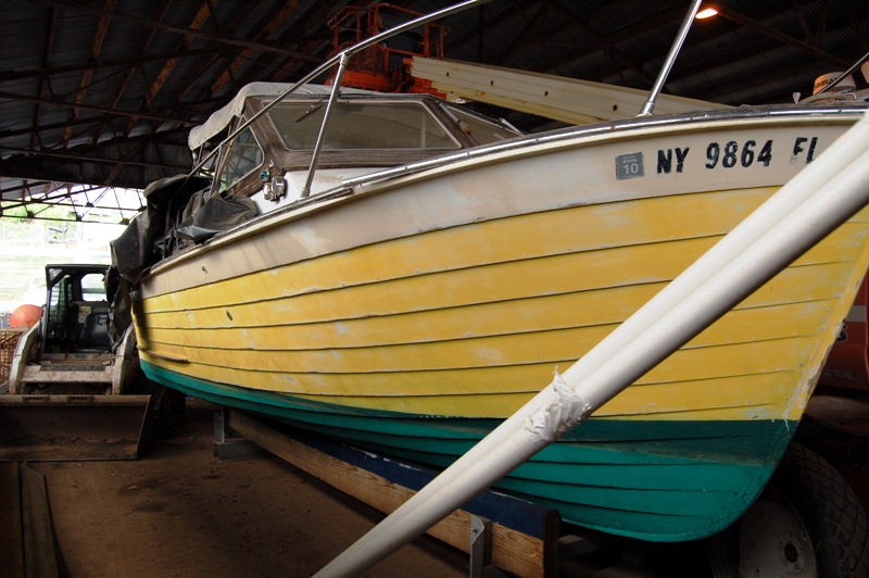 Lapstrake beauty-teak decks, v-berth, bow pulpit, head. Chrysler 318 V-8, All cushions (cockpit & v berth - very good condition), cockpit cover (3yrs), helm cover for bimini, anchors, shore power,extra prop etc. Winter storage inside past 2 years Engine professionally serviced and maintained and in excellent shape. Hull in very good condition. More photos available. Proceeds of sale benefit the Hudson River Maritime Museum www.hrmm.org