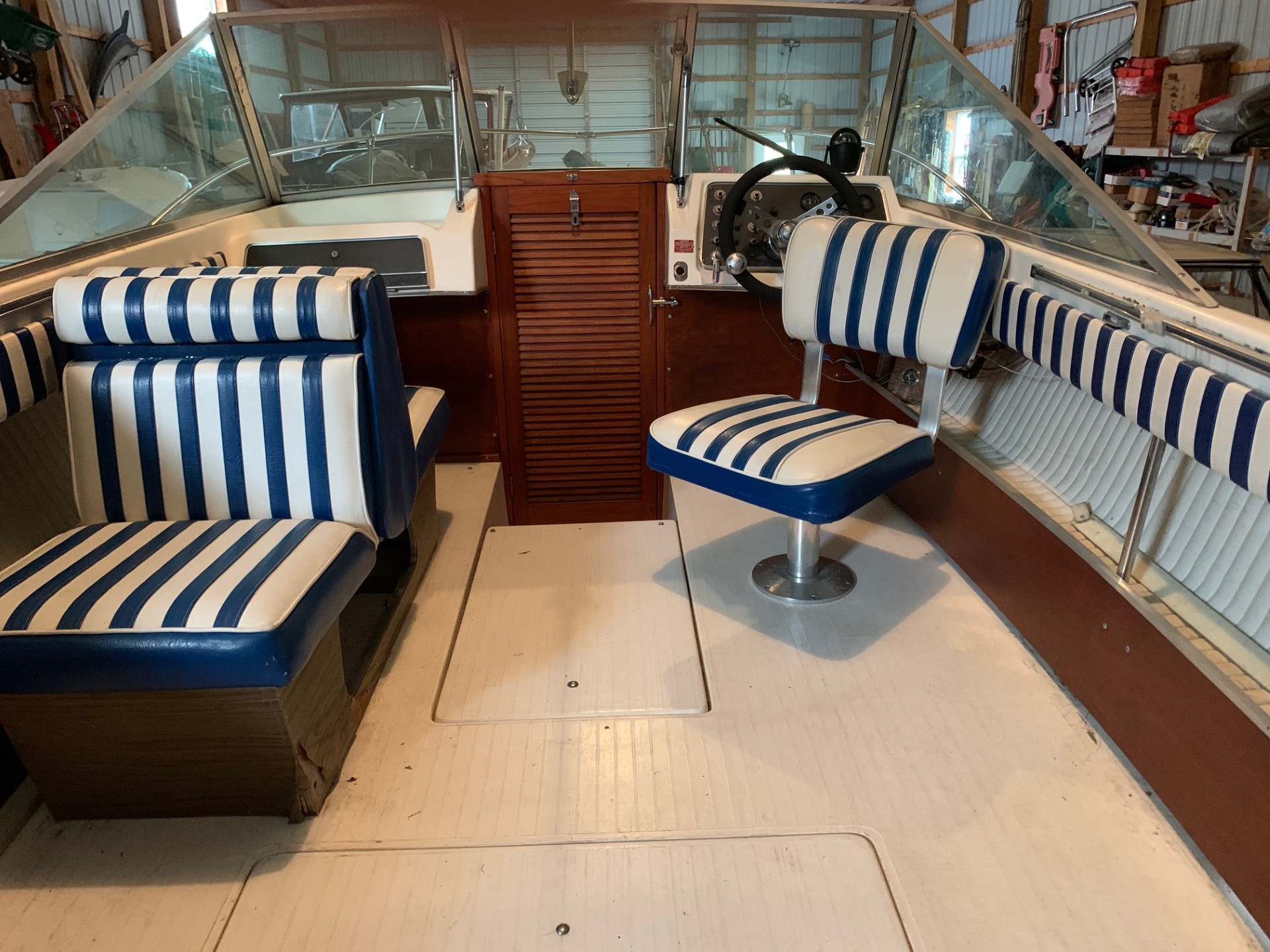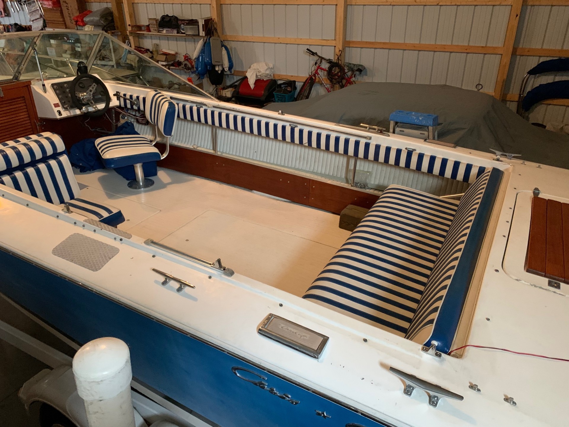 Engine rebuilt w/less than 50 hours. Recent all new upholstery. Like new full camping style canvas top side curtains and mooring cover. Volvo 270 I/O in excellent condition. Great reliable classic with plenty of space and seating to cruse with family and friends. Tandem trailer with surge brakes. Boat and trailer always fresh water use.
