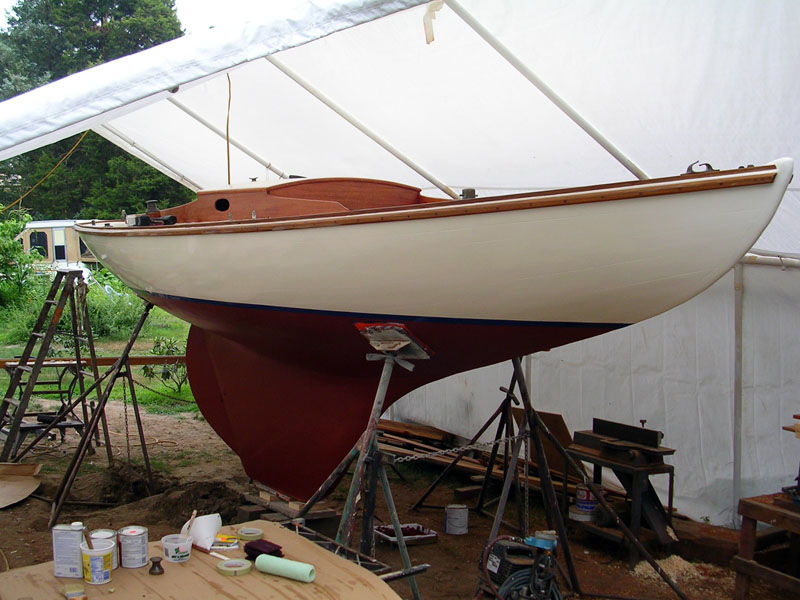 "Adamant", hull number 2 was designed by Fred Goeller and part of a nine boat fleet. Only two of the original boats remain. The Adams Interclub was the precursor to the more well known Quincy Adams 17 class. Found in Mystic, CT., Adamant was restored by current owner in 2005. The restoration included replacing all fasteners with silicon bronze, keel bolts, most of the floors, all deck beams, new deck, transom, cabin and cockpit. She is in excellent structural condition. New sails in 2005, as well as running and standing rigging. "Adamant" sails wonderful and is a great day boat and racer.