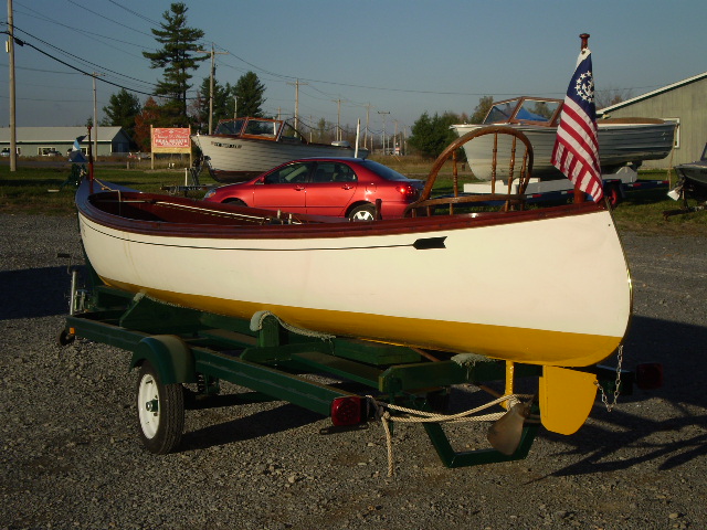 This is a wonderful example of a Central New York built skiff-putt. Original two cylinder Cady engine. Excellent condition. In the water this season (2007) everything works. Includes trailer designed for boat. Included with the boat is a photo of the boat in the water at Alexandria Bay in 1909...recognizable are Castle Rest and Hopewell Hall. Wonderful local historical boat and provenance. More photos are available.