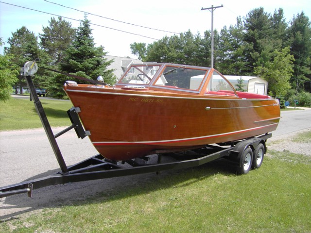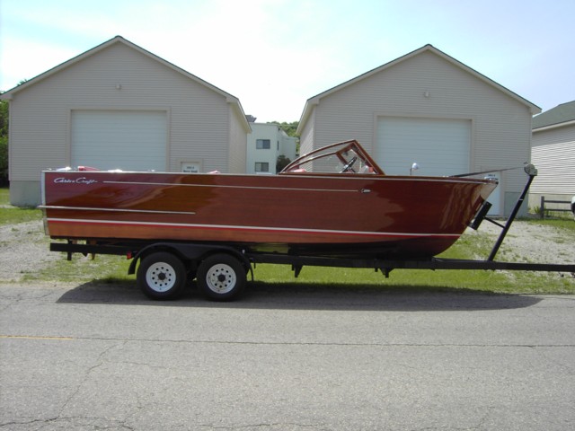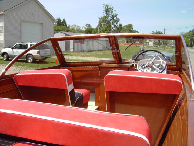 Beautiful cruiser with high freeboard, clipper bow, with capability to travel into large bodies of water. Seating for 9 with Amidship option, the only 59 I have ever seen with this option. Every option other than twin screw was included at manufacture. Complete hull restoration 2004, new hull varnish 2009, electrical 2003, new block including engine rebuilt 2004, chrome plated 2004 (95%) and period correct seat surfaces 2004. Hull # 036 of 144. Only freshwater operated, low total hours. The engine rebuild just upgraded the block so to keep the original look of the engine. The only year the boat was used since 2004 was 2008. The boat is water ready.