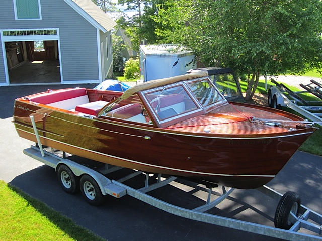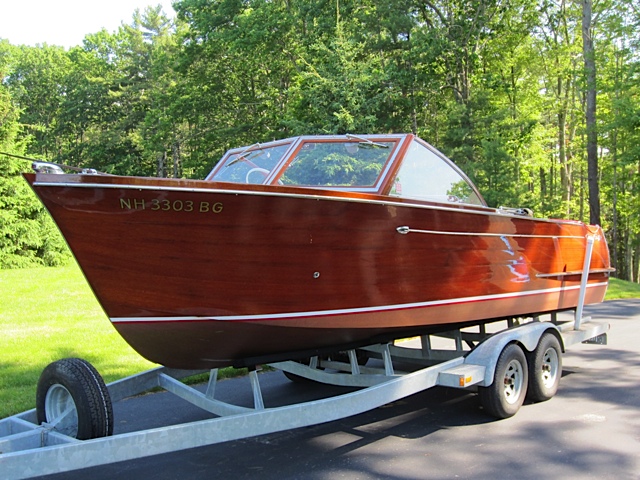 A fully restored large utility. Replaced 5200 bottom and frames, original engine restored. Comes with full mooring cover, excellent trailer, step ladder and lots of accessories. Always professionally maintained. All details attended to- instruments, controls new upholstery, flooring and finish.