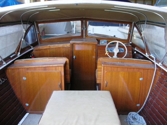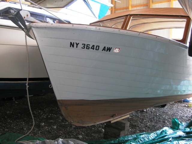 This is a 1962 24ft Lyman soft-top utility that I bought 10 years ago that needs some restoration. Last in the water 2005. Interior was refinished and looks sharp. Upholstery is in good condition. Original Grey Marine 188hp with rebuilt starter, fuel pump, carburetor and new battery cables and battery. Should run strong with tune up. When bought, the transom and decks were painted to cover repairs. The bow and transom are now varnished and the repairs visible. Deck from the windshield to the stern is vinyl. Some rot in the port side stringer just ahead of the motor mount. Hull swells tight with no leaks. Good investment canidate for restoration.