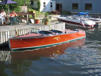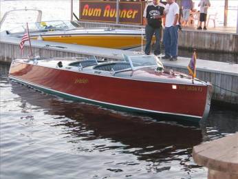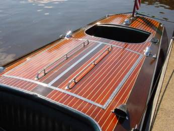 A great looking all mahogany 24 foot traditional triple cockpit. the boat had a new bottom put on in 1999 and the boat has low hours and is in excellent condition. In 2007 the owner replaced the upholstery and had the boat sanded and refinished. The motor is mint and all the instrumenst are in good working condition. Powered by a Crusader 454 330 HP this boat has always been infresh water and lightly used. This is a perfect size for one person to handle, trailer, dock or take to your next boat show.