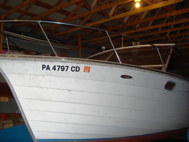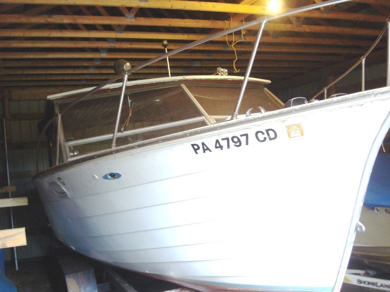 Built in 1971, wooden hard top model (model X260HT). Powered by an OMC 215hp I/O. upper gear case on the outdrive and the steering mechanism have been replaced. Sitting on a good trailer. She was used in recent years as a picnic boat on Lake Baptiste, where she is currently housed indoors. There is a v-berth for sleeping, a table, and a sink. She would be an ideal boat for Lake Ontario or any other large inland lake! All proceeds from this sale will benefit Ontario's Golden Retriever Rescue - make an offer today and enjoy a great boat!!