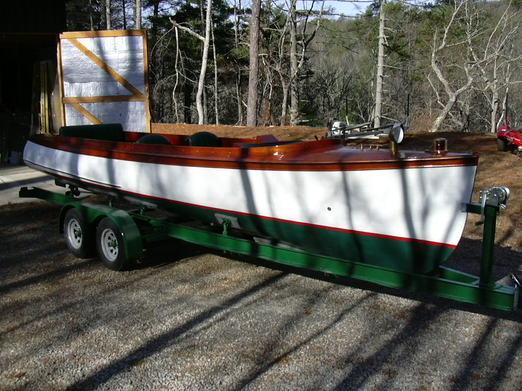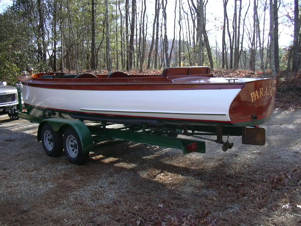 This 1922 Fay & Bowen Launch is in very fine user condition. She was repowered with a Chris Craft Model B, 4 cylinder engine and runs great. All wood is original and there is no rot to be found. Nice dark green interior. This is a very original boat. Comes with a custom fitted tandem axle trailer.