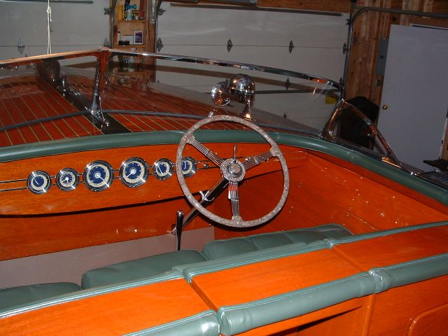 This was the first of only 25 Sportsman models Chris Craft built in ‘40 and ’41. Well- appointed with leather upholstery, the boat has ample storage, a walk-around second seat and a roomy aft area with removable deck chairs. It was professionally restored in 2002 to show condition, with a 5200 bottom, new planking, chrome and upholstery, and restored gauges and mechanical systems. Several coats of varnish and new flooring were added in 2006. The Scripps 208 powering the boat has very low hours. This is a beautiful boat ready for entertaining or the show.